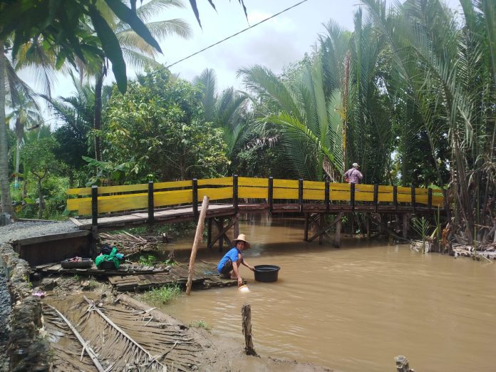 “Bahagia sekali dibuatkan jalan, karena sejak dulu kami hanya mengandalkan sungai. Kalau air surut baru bisa jalan kaki, tapi kalau pasang harus naik perahu kalau mau ke mana-mana,” ujar Sadiyah.