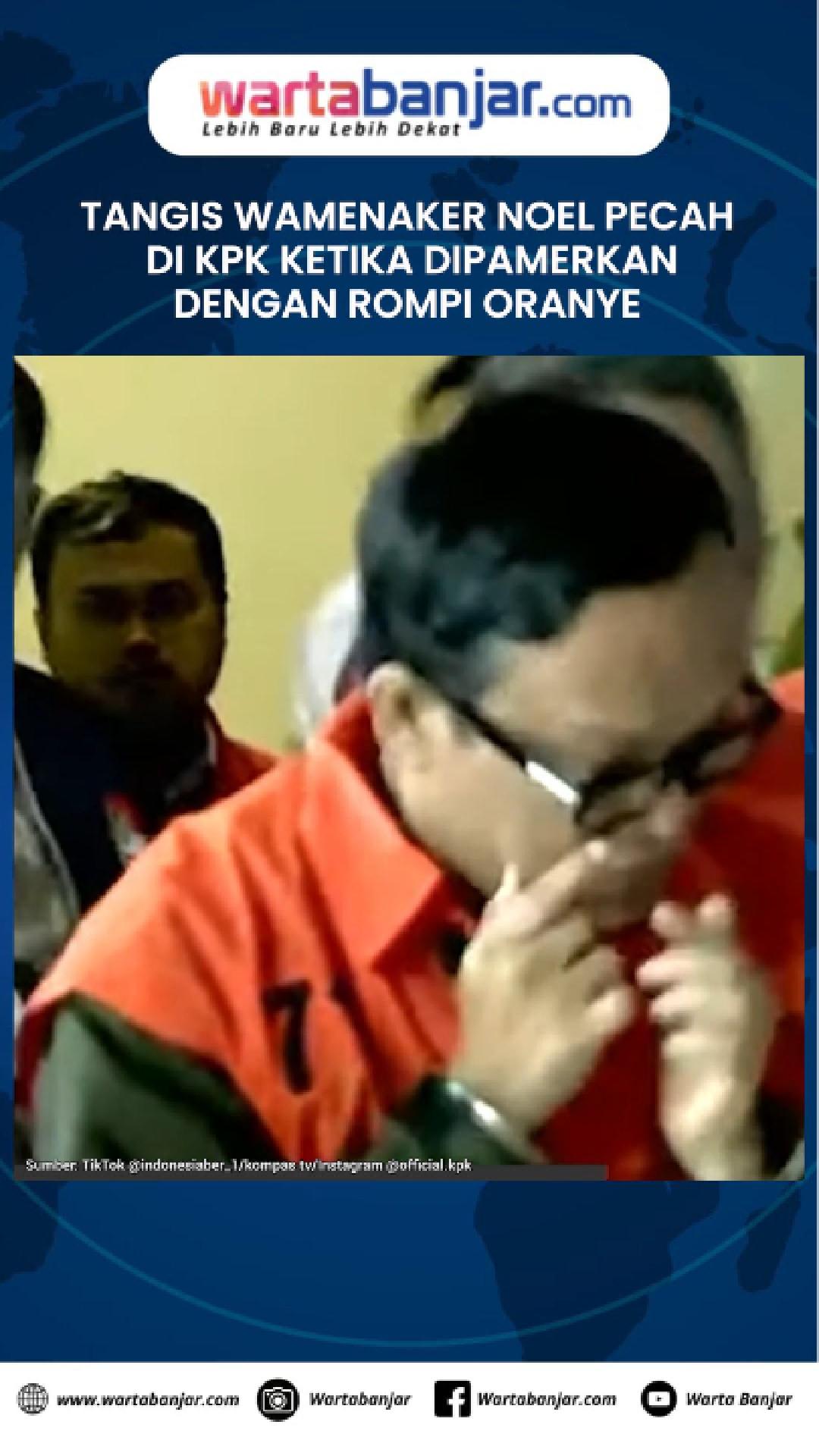 Noel keluar dari ruang pemeriksaan dengan wajah lusuh. Mengenakan rompi oranye khas KPK, ia tampak berjalan menuju ruang konferensi pers. Air matanya tak terbendung, terlihat jelas Noel menangis di depan awak media yang sudah memenuhi lokasi.