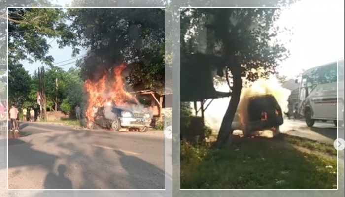 Dalam video yang diunggah akun Instagram @kalseltoday, terlihat jelas sebuah mobil yang terparkir di pinggir jalan Desa Tabaan dilalap si jago merah. Api membubung tinggi dari bagian mobil hingga membuat panik pengendara lain yang melintas di jalur tersebut.