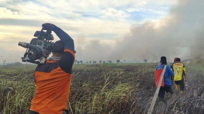 WARTABANJAR.COM, HSS – Kebakaran lahan terjadi di wilayah Desa Badaun dan Desa Baru, Kecamatan Daha Barat, Kabupaten Hulu Sungai Selatan (HSS), Rabu, 27 Agustus 2025.