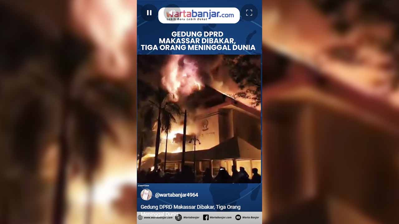 WARTABANJAR.COM – Peristiwa tragis terjadi di Kota Makassar pada Jumat (29/8/2025) sore ketika massa menyerang dan membakar gedung DPRD Kota Makassar. Akibat kejadian itu, tiga orang dilaporkan meninggal dunia dan lima lainnya mengalami luka-luka.