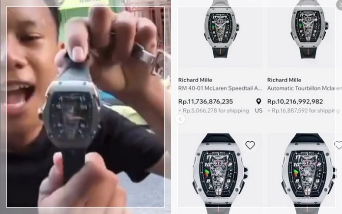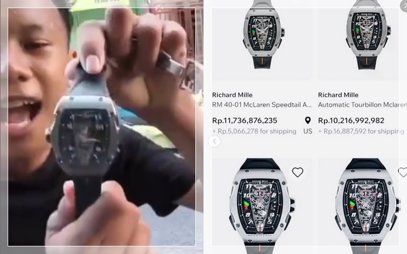 Dalam unggahan tersebut, akun Instagram @putrasiregarr17 langsung mengidentifikasi jam tangan yang dikenakan si anak sebagai Richard Mille McLaren yang diperkirakan seharga Rp 11,7 miliar.