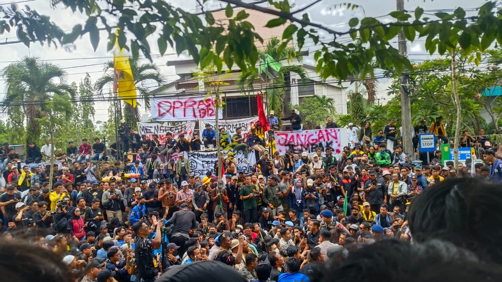Masa aksi sendiri berasal dari berbagai elemen masyarakat, mulai dari driver ojol, mahasiswa hingga masyarakat umum.