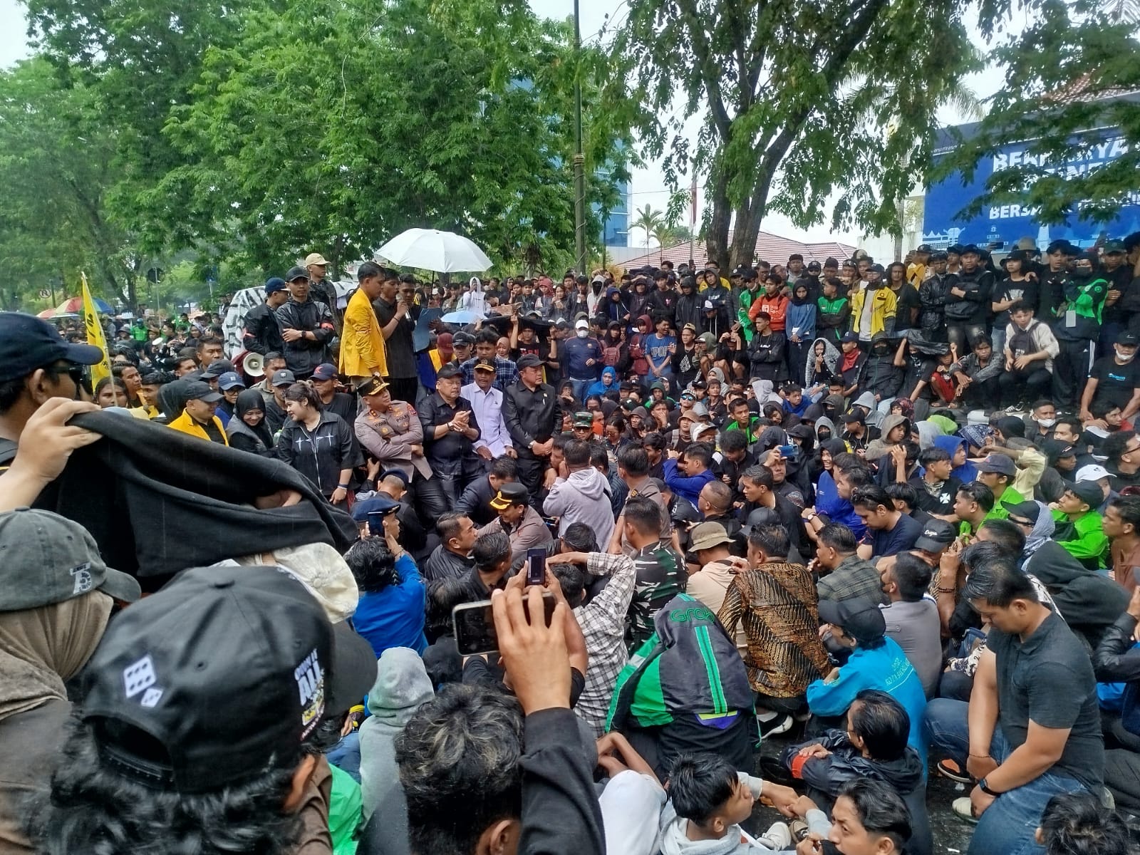Pantauan hingga pukul 14.00 WITA, ratusan massa yang terdiri dari berbagai elemen masyarakat masih bertahan menyampaikan aspirasi mereka.
