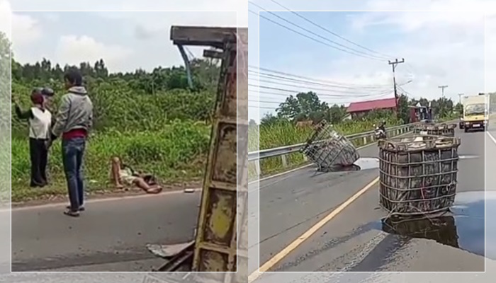 Dalam rekaman itu terlihat kondisi mengenaskan, seorang korban terkapar di pinggir jalan usai kecelakaan. Muatan truk yang berserakan di jalan membuat arus lalu lintas tersendat dan menimbulkan kepanikan warga sekitar.