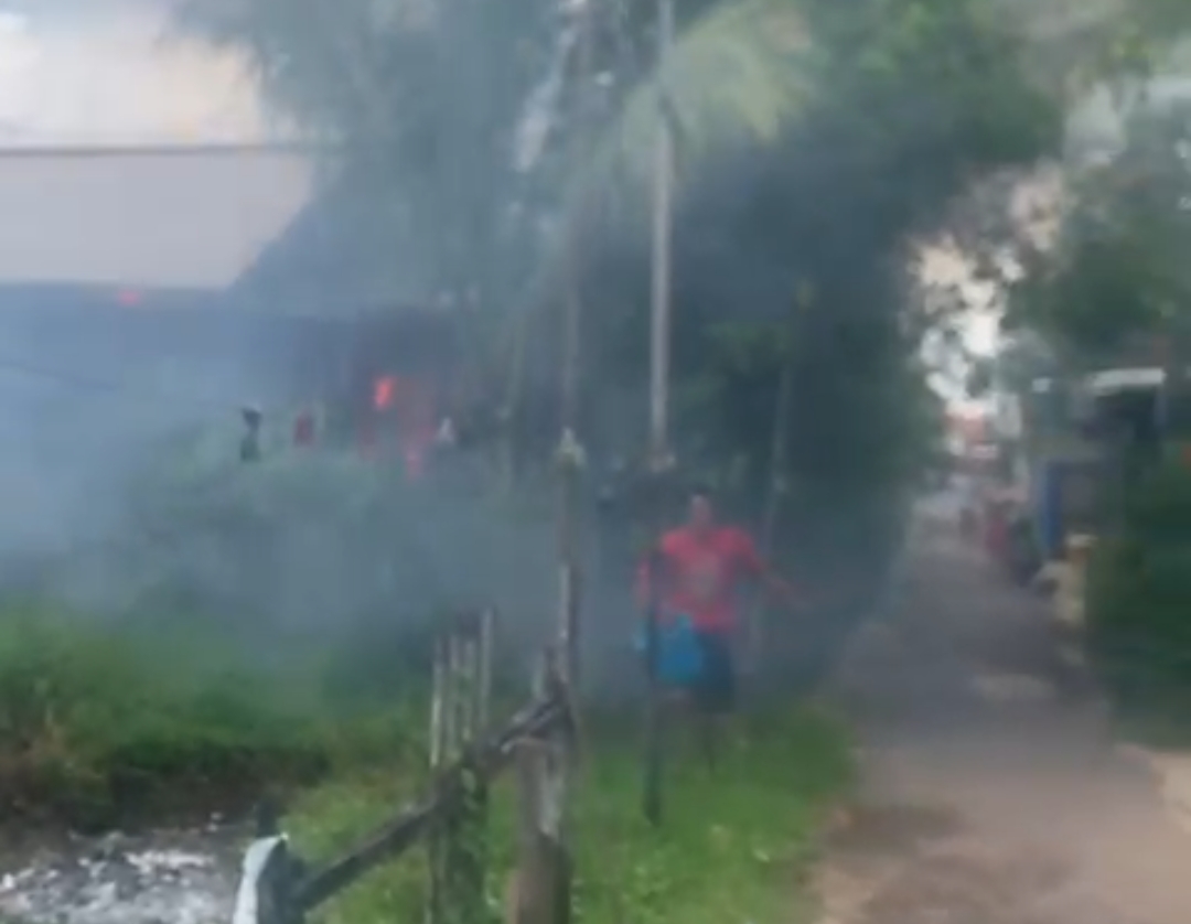 Sebelumnya kobaran api terlihat di bagian depan rumah. Warga tampak panik dan berupaya memadamkan api dengan peralatan seadanya.