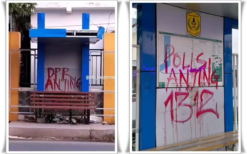 WARTABANJAR.COM, BANJARMASIN – Beberapa halte di Jalan Gatot Subroto, Kota Banjarmasin, menjadi sasaran coretan vandalisme oleh orang tak dikenal (OTK) seperti terlihat, Minggu (7/9/2025). Video kejadian tersebut sempat diunggah akun Instagram @info_banjarmasin, memperlihatkan tulisan-tulisan kasar yang menghiasi fasilitas publik.