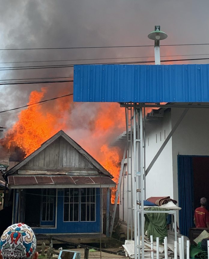 Informasi dihimpun, sementara ada tiga bangunan rumah yang terbakar.