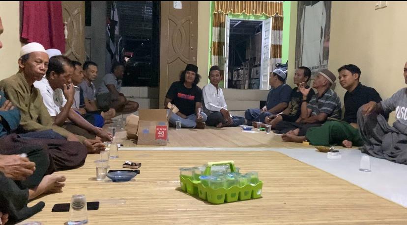 Warga Desa Baru berkumpul di salah satu rumah warga untuk membahas kondisi desa. Mereka menyoroti arah penggunaan anggaran desa yang dinilai tidak transparan karena tidak pernah melibatkan warga.