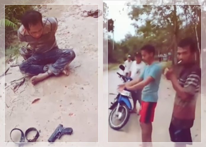 Dalam video yang viral di media sosial, pelaku terlihat sudah dalam kondisi terikat. Ia ditangkap warga usai diduga kuat mengedarkan sabu-sabu. Namun sebelum dilumpuhkan, pelaku nekat melepaskan tembakan menggunakan pistol dan mengenai salah seorang warga yang berupaya menghentikannya.