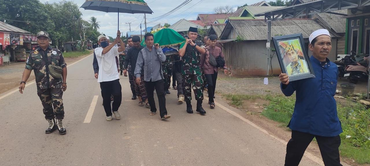 Sebagai bentuk penghormatan terakhir, Dandim Letkol Inf Adhy Irawan secara langsung ikut serta mengangkat keranda jenazah bersama masyarakat, mengantarkan almarhum menuju tempat peristirahatan terakhirnya. (Wartabanjar.com/Gazali)