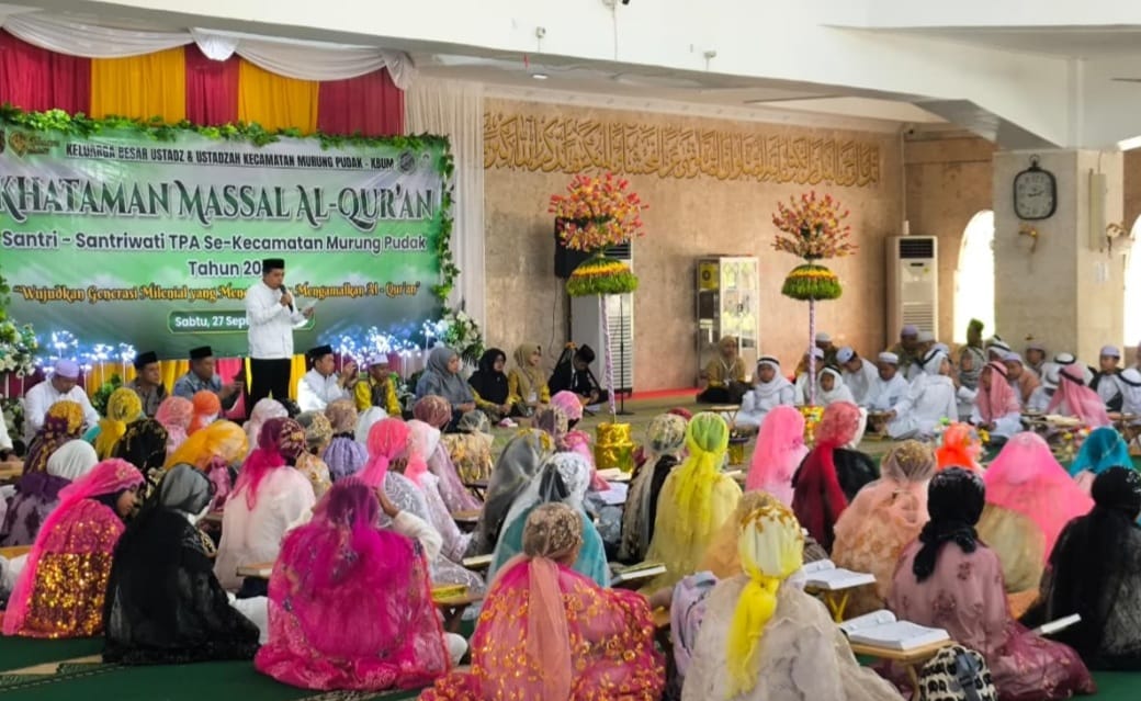 WARTABANJAR.COM, TANJUNG – Sebanyak 96 anak didik Taman Pendidikan Al Quran (TPA) melaksanakan khataman massal yang diselenggarakan oleh Keluarga besar ustadz dan ustadzah se Kecamatan Murung Pudak di Masjid At Taqwa, Kelurahan Belimbing, Tabalong, Sabtu (27/9).