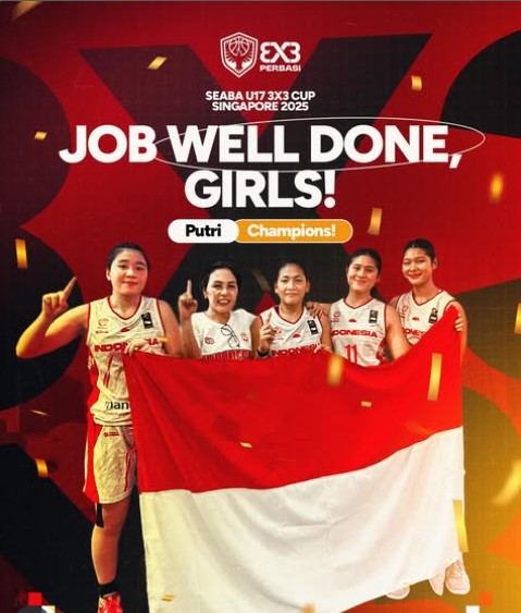 “Indonesia Raya! Selamat timnas 3×3 Putri U-17 menjadi peringkat pertama pada gelaran SEABA U-17 3×3 Cup di Singapura. Jaga momentum positif ini, girls,” tulis akun resmi timnas basket Indonesia, Senin (29/9).