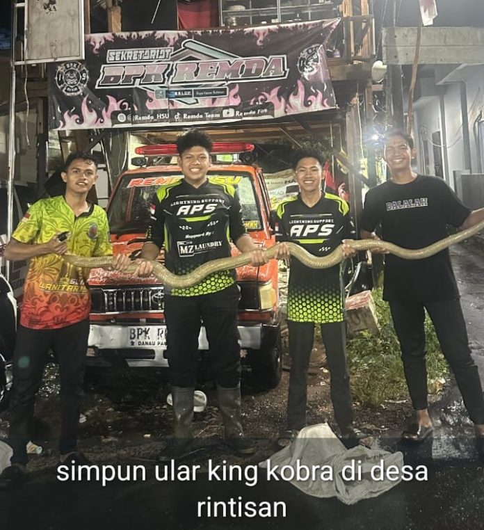 WARTABANJAR.COM, AMUNTAI- Warga Desa Rintisan, Kecamatan Danau Panggang, Kabupaten Hulu Sungai Utara (HSU) dihebohkan oleh kemunculan seekor ular king kobra pada Senin (29/9/2025) sekitar pukul 17.00 Wita.