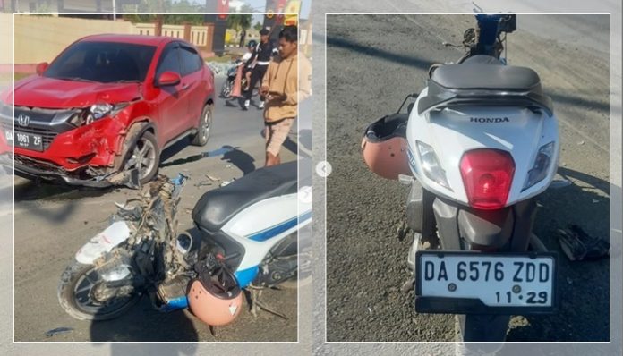 Video kejadian ini viral di media sosial setelah diunggah akun Instagram @seputarbanua. Dalam rekaman terlihat sebuah mobil Honda CRV dan motor matik Honda saling bertabrakan hingga sama-sama ringsek parah di bagian depan.