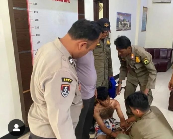 WARTABANJAR.COM, BANJABMASIN – Seorang pemuda yang diduga Orang Dengan Gangguan Jiwa (ODGJ) diamanka Polsek Kawasan Pelabuhan Laut (KPL) Banjarmasin bersama petugas Satpol PP Kota Banjarmasin.