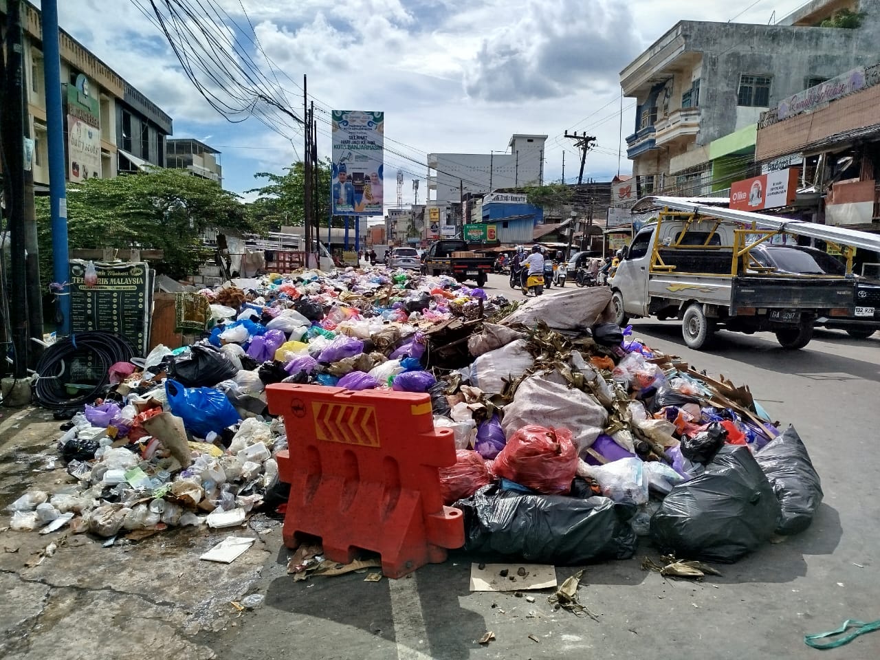 Pantauan Wartabanjar.com di lokasi memperlihatkan tumpukan sampah setinggi hampir satu meter yang belum juga diangkut sejak akhir pekan. Saat cuaca panas terik, aroma tak sedap dari sampah semakin menusuk hidung, membuat pengendara yang melintas terpaksa menutup hidung.
