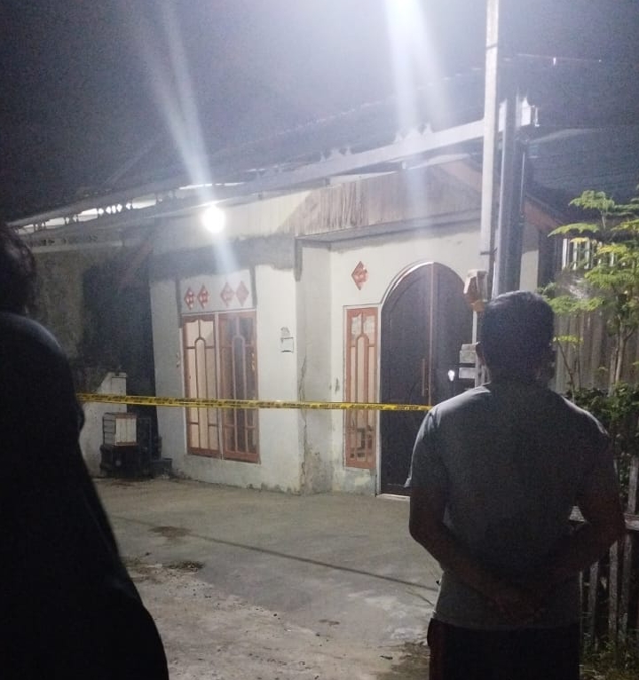 Garis polisi membentang di rumah tempat mayat ditemukan. Belum ada informasi mengenai identitas mayat. (Wartabanjar.com/ahmad raihan)