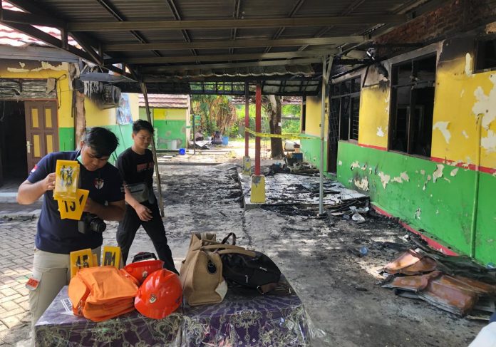 Selain itu, Bangunan yang terbakar merupakan ruang guru berukuran 7 x 13 meter dengan konstruksi dinding bata merah, atap seng, dan rangka kayu.