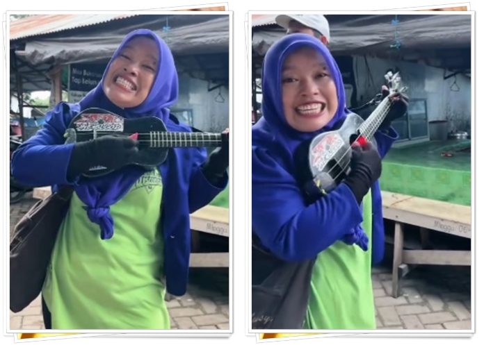 Dalam unggahan akun @banjarmasinbanget, wanita tersebut tampil dengan pakaian sederhana sambil memetik gitar kecil atau ukulele. Namun siapa sangka, suaranya yang merdu dengan cengkok dangdut khas Rhoma Irama membuat warganet jatuh hati.