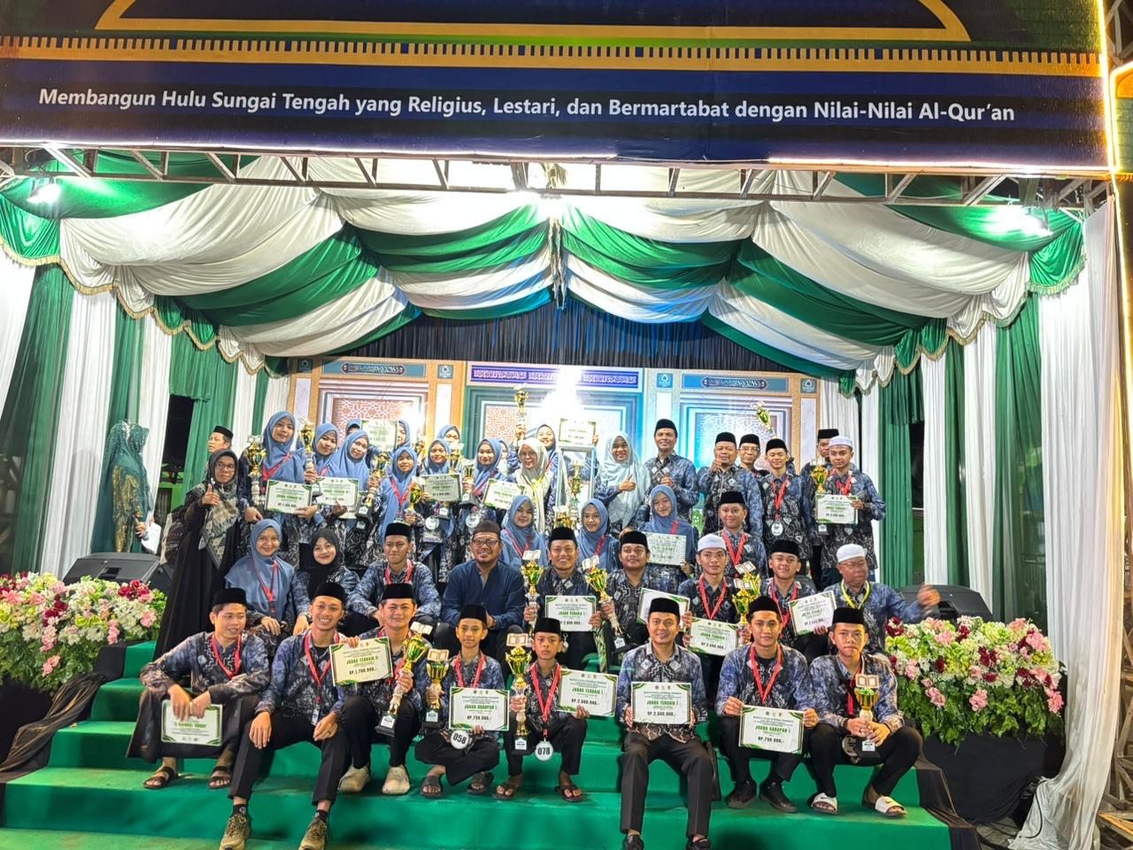 Penyerahan trofi juara umum berlangsung pada malam penutupan MTQ, Rabu (29/10/2025), di Pondok Pesantren Raudhatul Ulum, Kecamatan Hantakan.