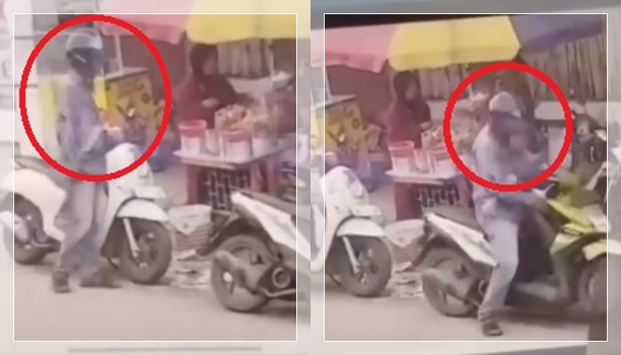 Dalam tayangan tersebut, pelaku terlihat mendekati sepeda motor korban dengan gerakan cepat. Begitu memastikan situasi aman, ia langsung mengambil handphone yang disimpan di dalam box motor, lalu kabur tanpa jejak.