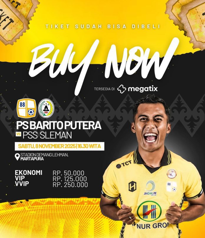 WARTABANJAR.COM – Tiket laga Barito Putera vs PSS Sleman pekan ke-9 Pegadaian Championship 2025/2026 di Stadion Demang Lehman, Sabtu (8/11/2025), kick off pukul 15:30 WIB sudah bisa dibeli.