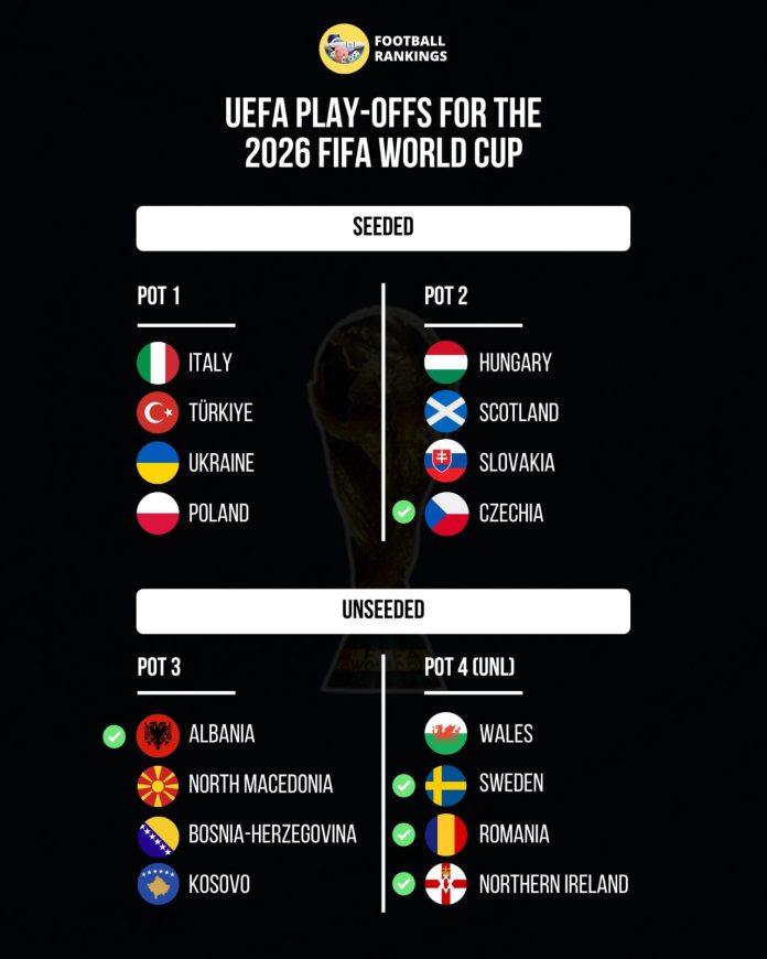 WARTABANJAR.COM, JAKARTA – Kualifikasi Piala Dunia 2026 zona Eropa segera memasuki babak playoff yang akan menentukan empat slot tersisa menuju Amerika Serikat, Kanada, dan Meksiko. Sebanyak 16 tim akan bersaing di babak playoff ini, termasuk tim-tim besar seperti Italia dan Turki.