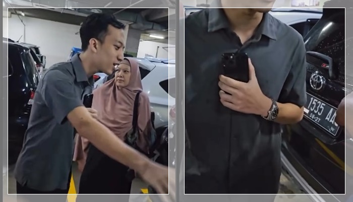 Situasi memanas saat kelompok tersebut meminta izin untuk memeriksa mobil. Terjadi adu argumen karena pria berkemeja hitam keberatan kendaraan itu dicek.