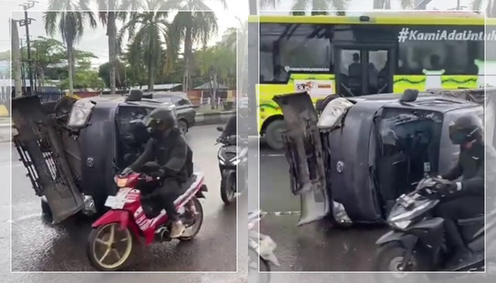 Kondisi jalan yang basah dan licin diduga menjadi pemicu insiden tersebut. Warga yang melintas diminta meningkatkan kewaspadaan, terutama pada jam-jam rawan ketika arus kendaraan cukup padat.