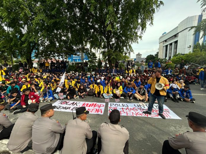 Dalam orasinya, para mahasiswa lantang menuntut kehadiran langsung kedua pejabat tersebut guna memberikan kejelasan atas tuntutan yang sebelumnya dianggap tidak pernah direspons secara serius.