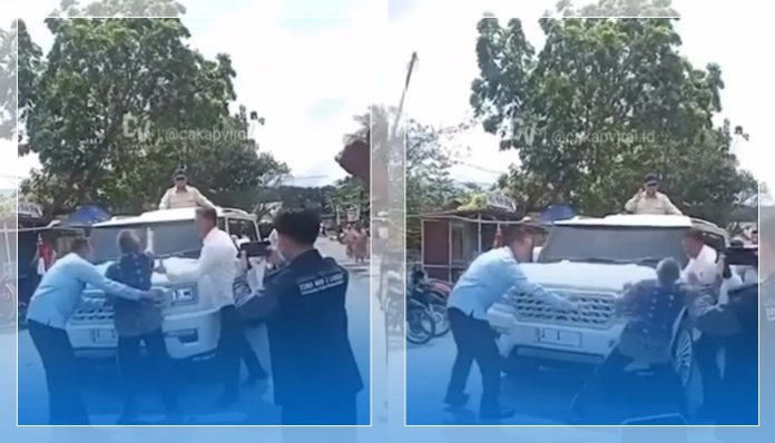Video itu memperlihatkan pria tersebut berdiri tepat di jalur kendaraan, memaksa mobil kepresidenan memperlambat laju. Situasi sempat membuat suasana tegang sebelum akhirnya meski sempat kewalahan petugas pengamanan bergerak cepat mengamankan kondisi dan memastikan perjalanan Presiden tetap berjalan lancar.