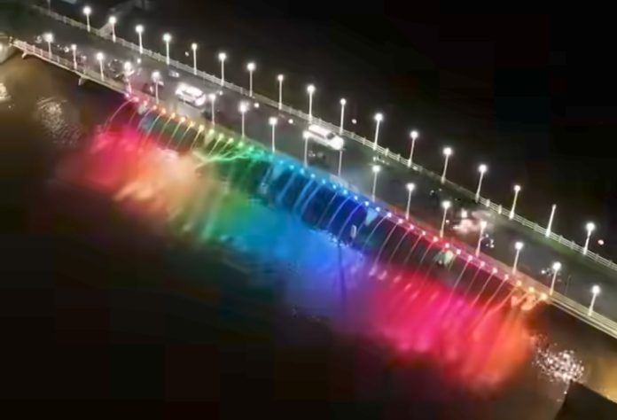 WARTABANJAR.COM, BANJARMASIN – Pertunjukkan dua air mancur digelar malam ini di dua lokasi di Kota Banjarmasin, Sabtu (13/12).