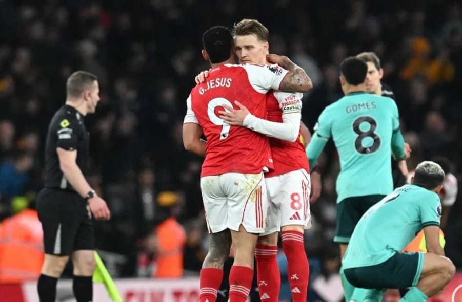Bermain di Emirates Stadium pada Minggu dini hari WIB, The Gunners menang 2-1 lewat dua gol bunuh diri Sam Johnstone dan Yerson Mosquera, sementara Wolves sempat memberi perlawanan lewat gol penyeimbang Tolu Arokodare pada menit akhir.