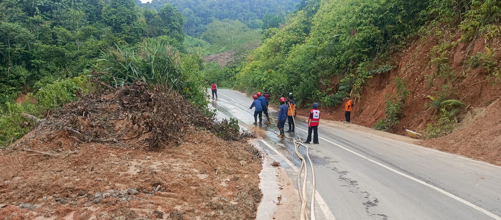 BPBD Kabupaten Banjar mengimbau masyarakat dan pengguna jalan agar tetap meningkatkan kewaspadaan saat melintas di kawasan rawan longsor, khususnya pada saat kondisi cuaca hujan, serta selalu mematuhi arahan petugas di lapangan demi keselamatan bersama. (Wartabanjar.com/BPBD Kab.Banjar)