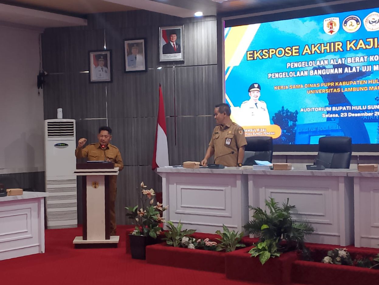 Kajian ini bertujuan memberikan rekomendasi kebijakan pengelolaan alat berat konstruksi, meningkatkan transparansi laboratorium uji material, serta mendorong peningkatan kualitas layanan publik dan optimalisasi PAD daerah. Pengelolaan alat berat yang sebelumnya sempat terhenti kini dikaji ulang bersama ahli ULM, sekaligus disiapkan pembangunan laboratorium uji material untuk menjamin mutu bangunan dan infrastruktur di HST.