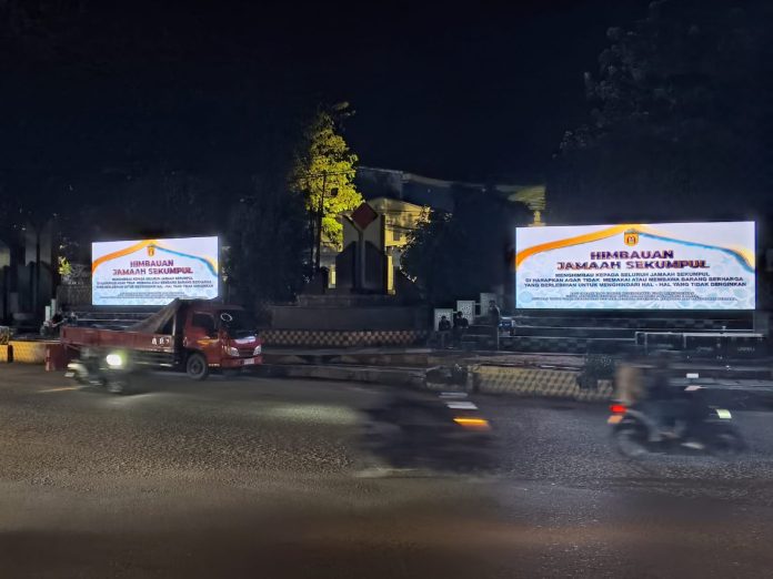 “Videotron ini dipasang untuk membantu jamaah melihat langsung siaran pengajian. Tentunya penayangannya telah melalui proses perizinan dan tidak dilakukan secara sembarangan,” jelasnya.
