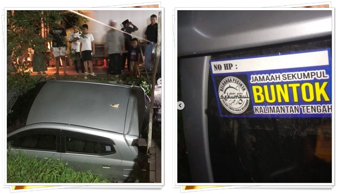 Dari foto yang beredar, terlihat stiker bertuliskan “Jamaah Sekumpul Buntok” menempel di kendaraan tersebut. Hal ini memunculkan dugaan bahwa mobil yang mengalami kecelakaan tunggal itu merupakan bagian dari rombongan jamaah Haul Guru Sekumpul yang berasal dari Buntok, Kabupaten Barito Selatan, Kalimantan Tengah.