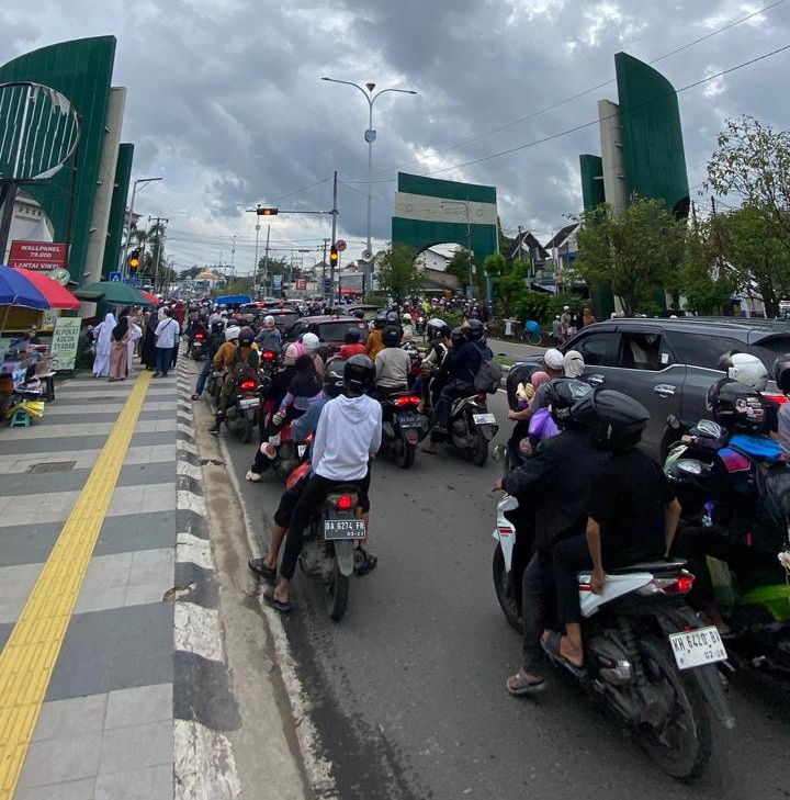 Beredar rekaman video di media sosial dan grup WhatsApp kondisi lalu lintas di dekat Masjid Pancasila menuju Sekumpul pada Sabtu (27/12/2025) sore macet.