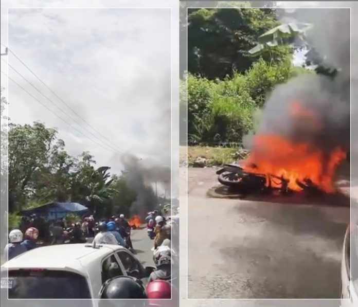 WARTABANJAR.COM, RANTAU – Insiden mengejutkan terjadi di jalur utama menuju Sekumpul. Sebuah sepeda motor dilaporkan terbakar di kawasan Jalan Ahmad Yani, Kecamatan Binuang, Kabupaten Tapin, Sabtu (28/12/2025), saat arus lalu lintas tengah dipadati jamaah yang hendak menghadiri peringatan 5 Rajab.