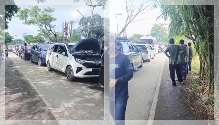 Kemacetan terpantau mengular panjang sebelum kawasan Mali-Mali. Kondisinya begitu parah hingga ratusan kendaraan roda empat dilaporkan tidak bergerak sama sekali selama berjam-jam. Arus lalu lintas terhenti, membuat pengendara terjebak tanpa kepastian waktu bisa melintas.