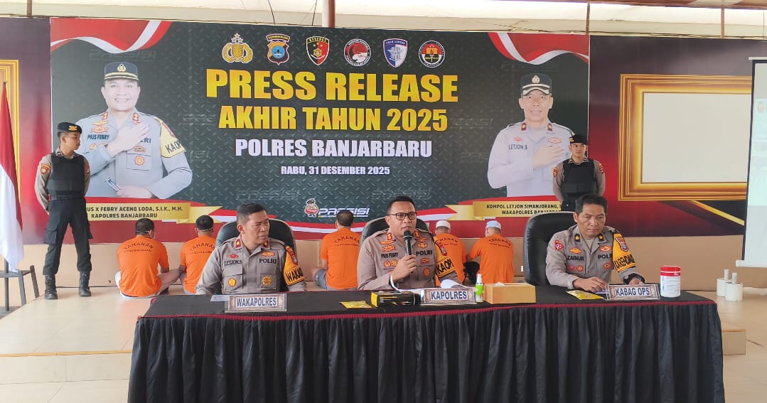 Hal tersebut disampaikan Kapolres Banjarbaru AKBP Pius X Febry Aceng Loda dalam rilis akhir tahun di Mapolres Banjarbaru, Rabu (31/12/2025).