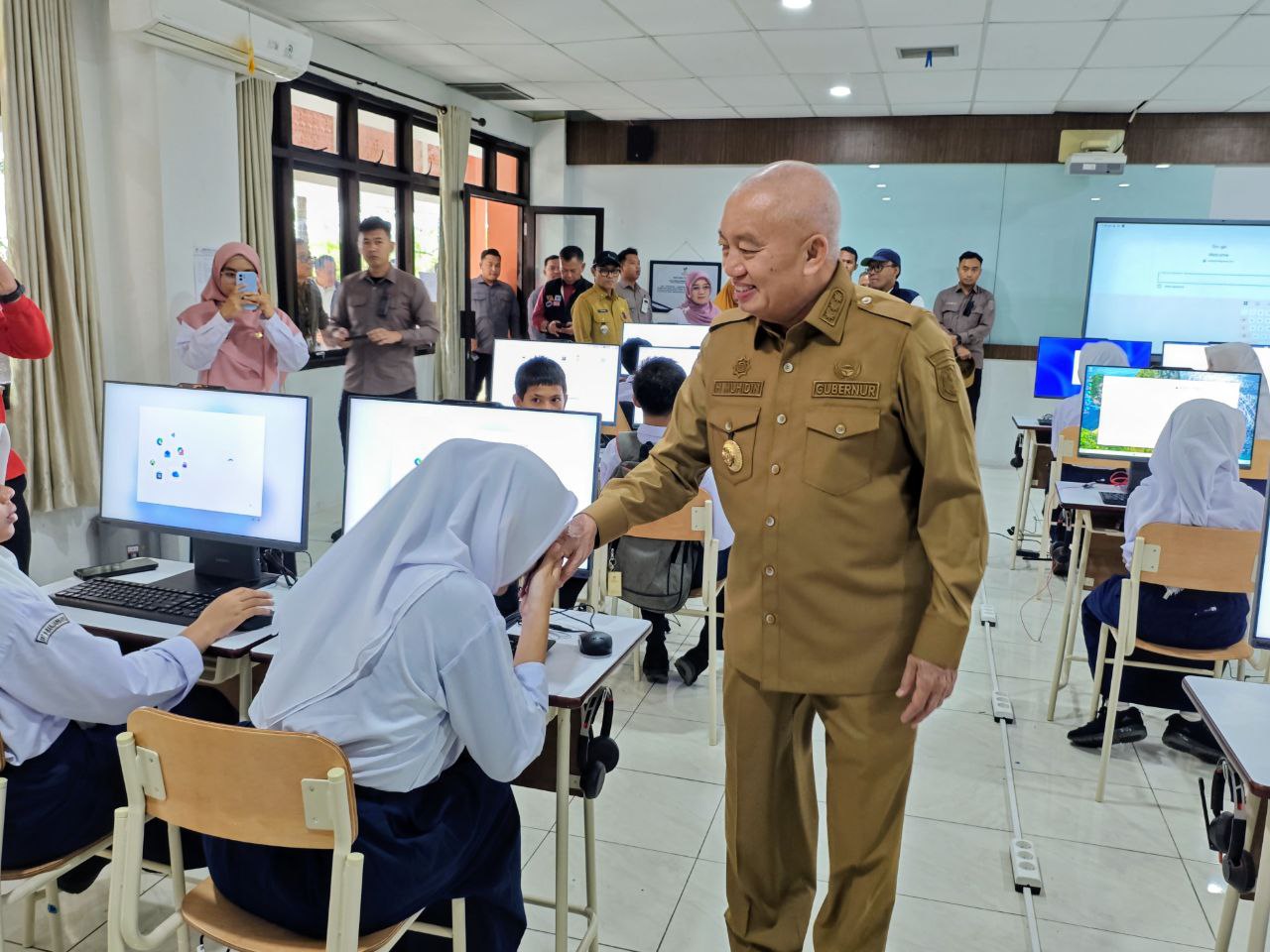 “Alhamdulillah, hari ini kita melihat langsung kondisi sekolahnya sudah lengkap, fasilitas komputer tersedia, tenaga pendidik juga ada. Anak-anak yang masuk ke sini adalah mereka yang tidak mampu secara ekonomi, tetapi pintar dan berpotensi. Ini yang kita dorong,” kata Gubernur H. Muhidin, Banjarbaru, Senin (5/1/2026).