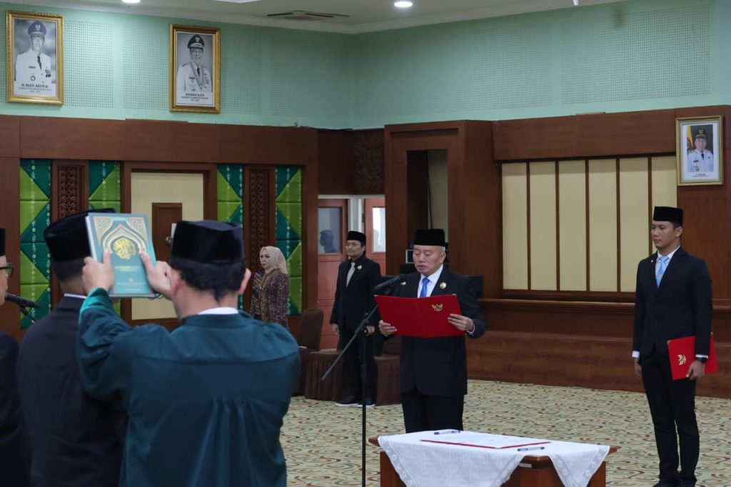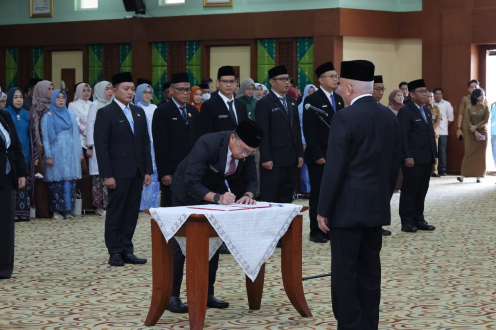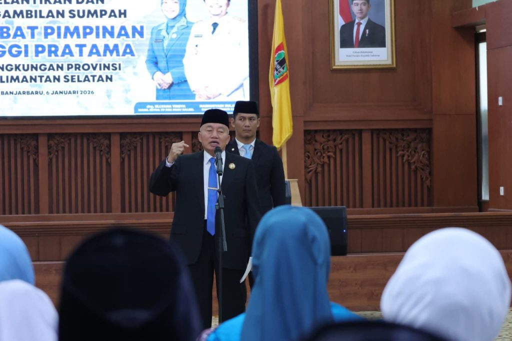 WARTABANJAR.COM, BANJARBARU – Gubernur Kalimantan Selatan, H. Muhidin, melantik 11 Pejabat Pimpinan Tinggi Pratama di lingkungan Pemerintah Provinsi Kalimantan Selatan, Selasa (6/1/2026), di Gedung DR KH Idham Chalid, Banjarbaru. Pelantikan dihadiri Ketua TP PKK Provinsi Kalsel Hj. Fathul Jannah Muhidin dan Wakil Gubernur Hasnuryadi Sulaiman.