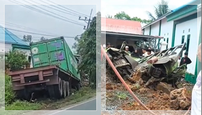 Truk Kontainer Hantam Bangunan Pinggir Jalan di Tanbu, Sopir Terjepit Kabin yang Rusak Parah