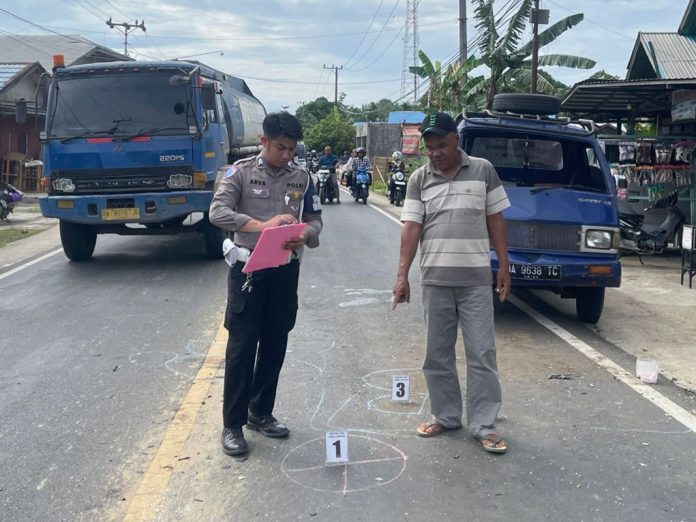 Peristiwa tersebut terjadi sekitar pukul 14.00 Wita di Desa Pemangkih, melibatkan sepeda motor Honda PCX warna merah bernomor polisi DA 4158 FE dengan mobil pikap Suzuki Carry warna biru bernomor polisi DA 9638 TC.