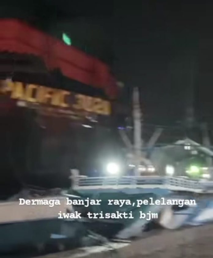 WARTABANJAR.COM, BANJARMASIN- Sebuah tongkang menabrak kapal yang sedang berada di tepi Dermaga Pelelangan Ikan Banjar Raya, Pelabuhan Triksakti, Banjarmasin, Sabtu (10/1/2026) malam.