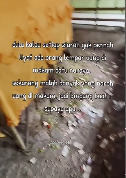 Mengutip unggahan Instagram @kalselfolk, netizen itu mengatakan dulu ketika berziarah ke makam Datu Nuraya tak pernah melihat orang melempar uang ke area sekitar kubur keramat itu.