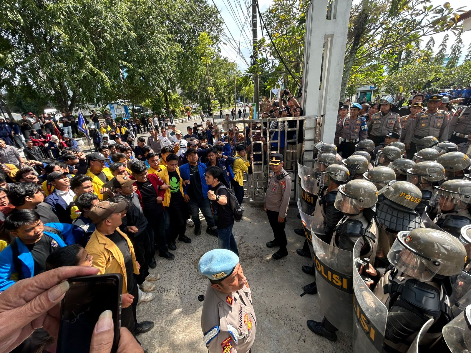 “Secara umum kegiatan pelayanan maupun pengamanan kegiatan Unras berjalan secara aman dan kondusif,” ujar Wakapolresta.