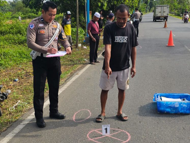 “Sesampainya di lokasi kejadian, pesepeda menyeberang jalan dan melakukan putar balik,” ujar Aipda Syamsuddin Noor usai melakukan olah tempat kejadian perkara (TKP).